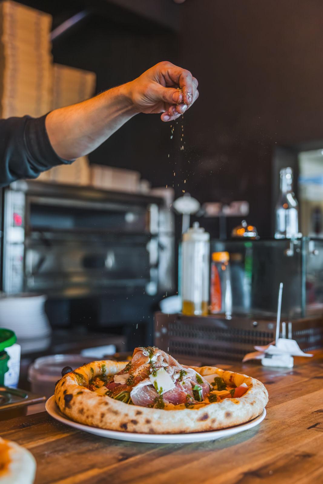 Chez nous, la pizza est une affaire de savoir-faire et de convivialité. Notre pâte maison, la cuisson au four à bois traditionnel et le choix d’ingrédients frais, locaux et soigneusement sélectionnés donnent à chaque recette une saveur authentique.
